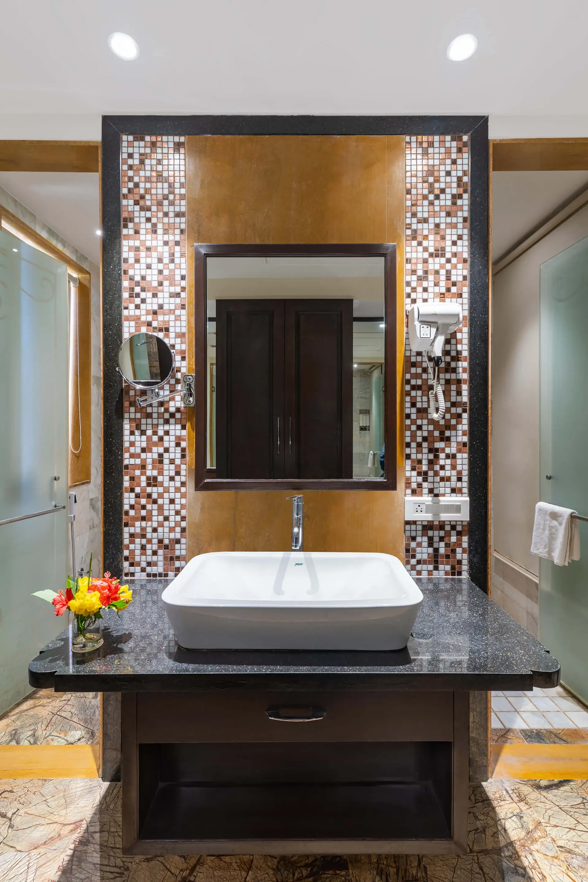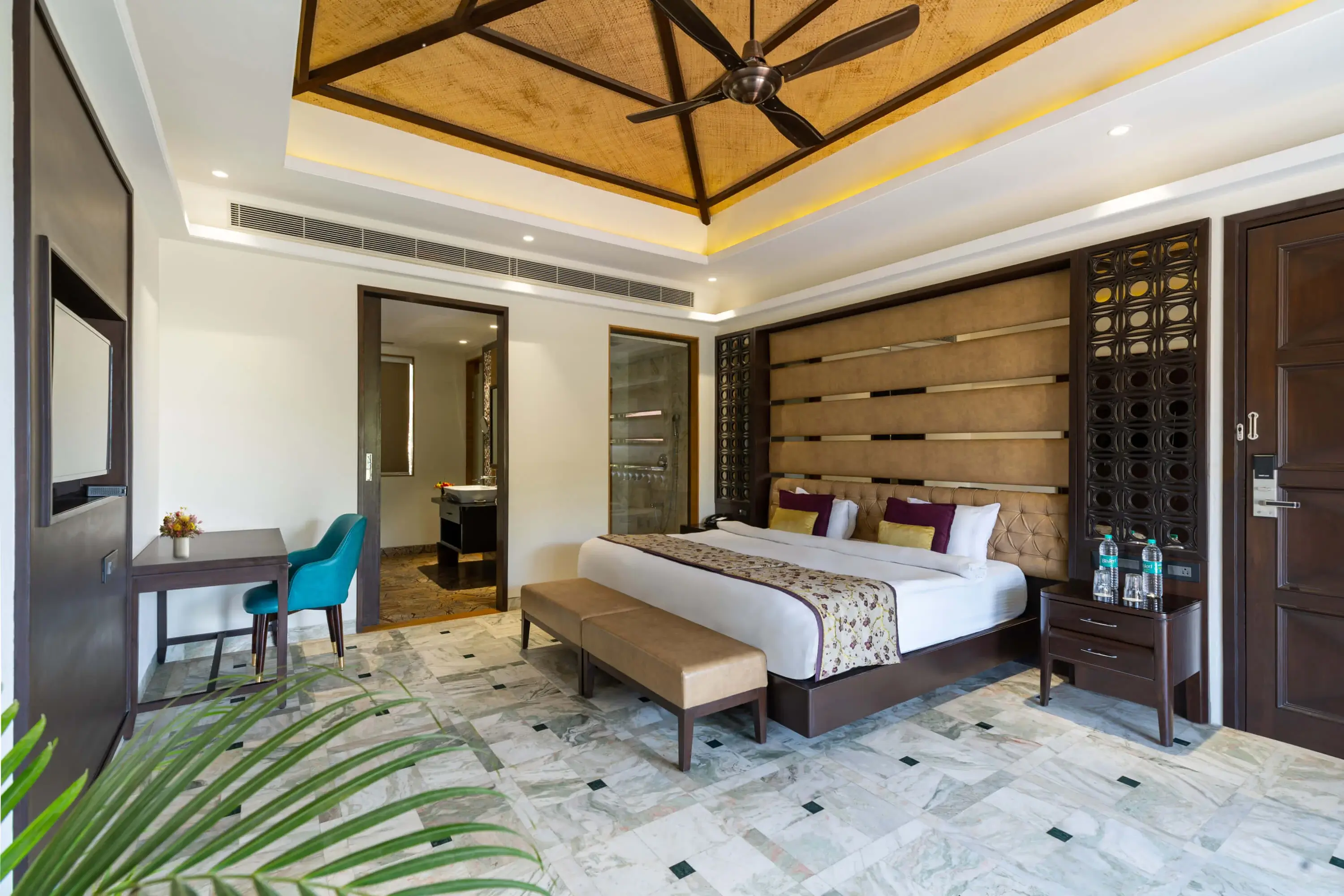 Signature suites at Ramya offer amazing rooftop vibes with aesthetically pleasing balconies overlooking swimming pools and lawns, burst of fresh air and ample of space to stroll around. The rooms redefine luxury with charismatic hospitality and dramatic interiors.